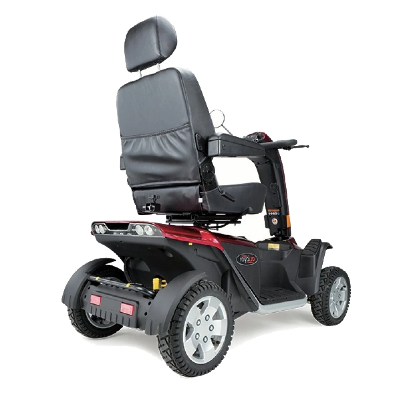 Velký stabilní čtyřkolový elektro skútr Pride Royal 20 patří mezi luxusní elektrické vozíky s vysokým výkonem. Doporučit ho můžeme i těm nejnáročnějším klientům. Právě vysoký výkon v kombinaci s velkými litými koly a sportovním odpružením umožňují využít skútr i v terénu mimo zpevněné cesty. Tlumiče mají nastavitelnou tuhost. Dle svých potřeb si však uživatel může nastavit také pohodlné sedadlo a sloupek řízení. Na řídícím panelu naleznete regulátor rychlosti, klakson, osvětlení, výstražná a směrová světla a ukazatel udávající stav baterií.