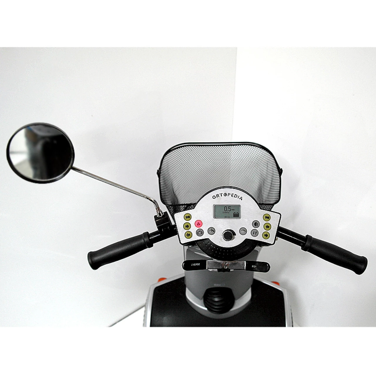 Elektrický skútr je vybaven předními, zadními i směrovými světly, nastavitelnými područky, polohovatelnou zádovou opěrkou a volitelnou opěrkou hlavy. Má přehledný ovládací panel s indikací nabití akumulátorů a spínací skříňkou. Sloupek řízení je plynule polohovací.