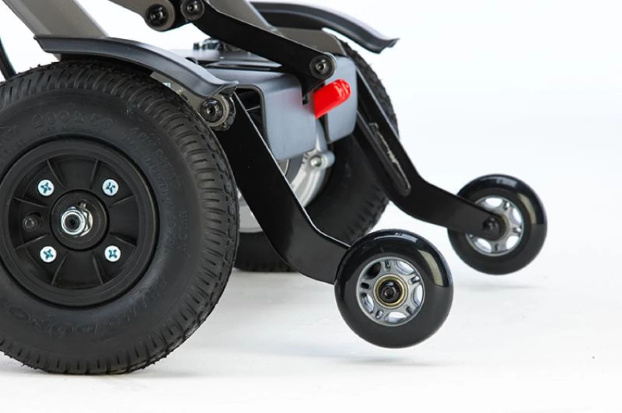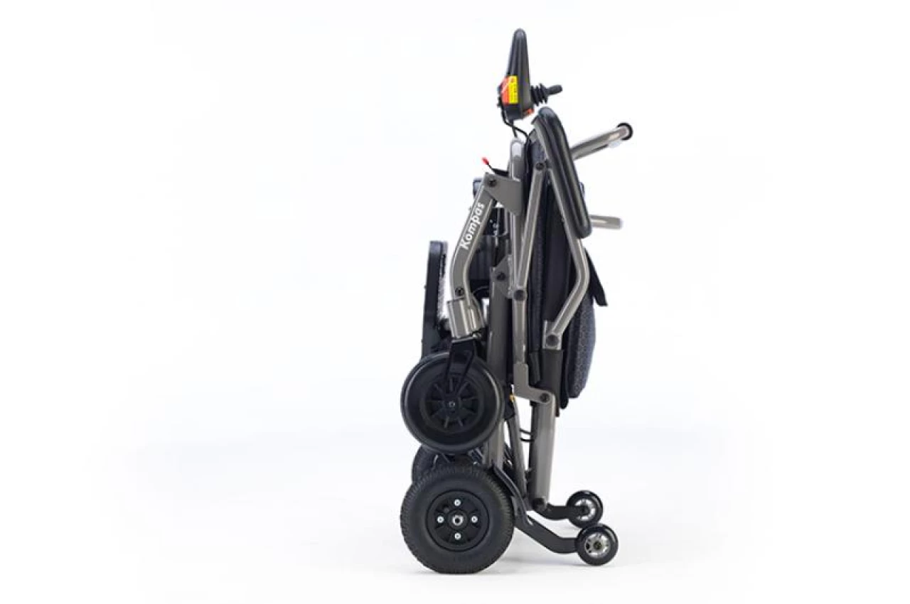 Skládací elektrický invalidní vozík Invacare Kompas s jednou z nejlehčích konstrukcí na trhu je vysoce kompaktní a pomáhá tak uživatelům s pohybovými obtížemi zachovat si vyšší míru soběstačnosti. Doporučit ho můžeme těm, co hledají skládací elektrický vozík pro invalidy kombinující nízkou hmotnost, skladnost a vysokou spolehlivost. Skládání probíhá manuálně v jednom kroku. Ovládací prvky jsou s citem zakomponovány tak, aby nenarušovaly elegantní designe vozíku.