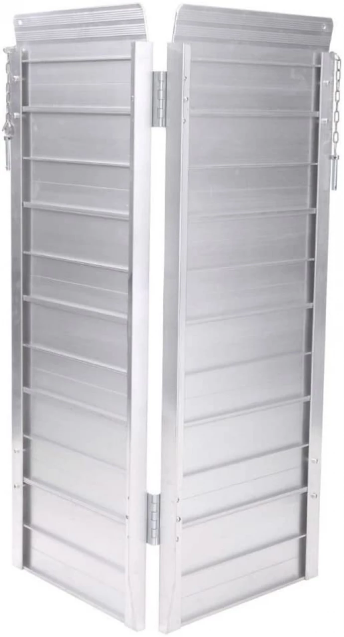 Skládací hliníkový nájezd je vybaven rukojetí pro snadnou manipulaci a protiskluzovým drážkovaným povrchem pro větší bezpečnost. I přes svou nízkou váhu má vysokou nosnost. Díky tomu ho lze využívat jak pro mechanické invalidní vozíky, tak pro elektrické invalidní vozíky a skútry pro seniory. Nájezd lze jednoduše složit a snadno se s ním manipuluje. Šroubení je vyrobeno z nerezové oceli.