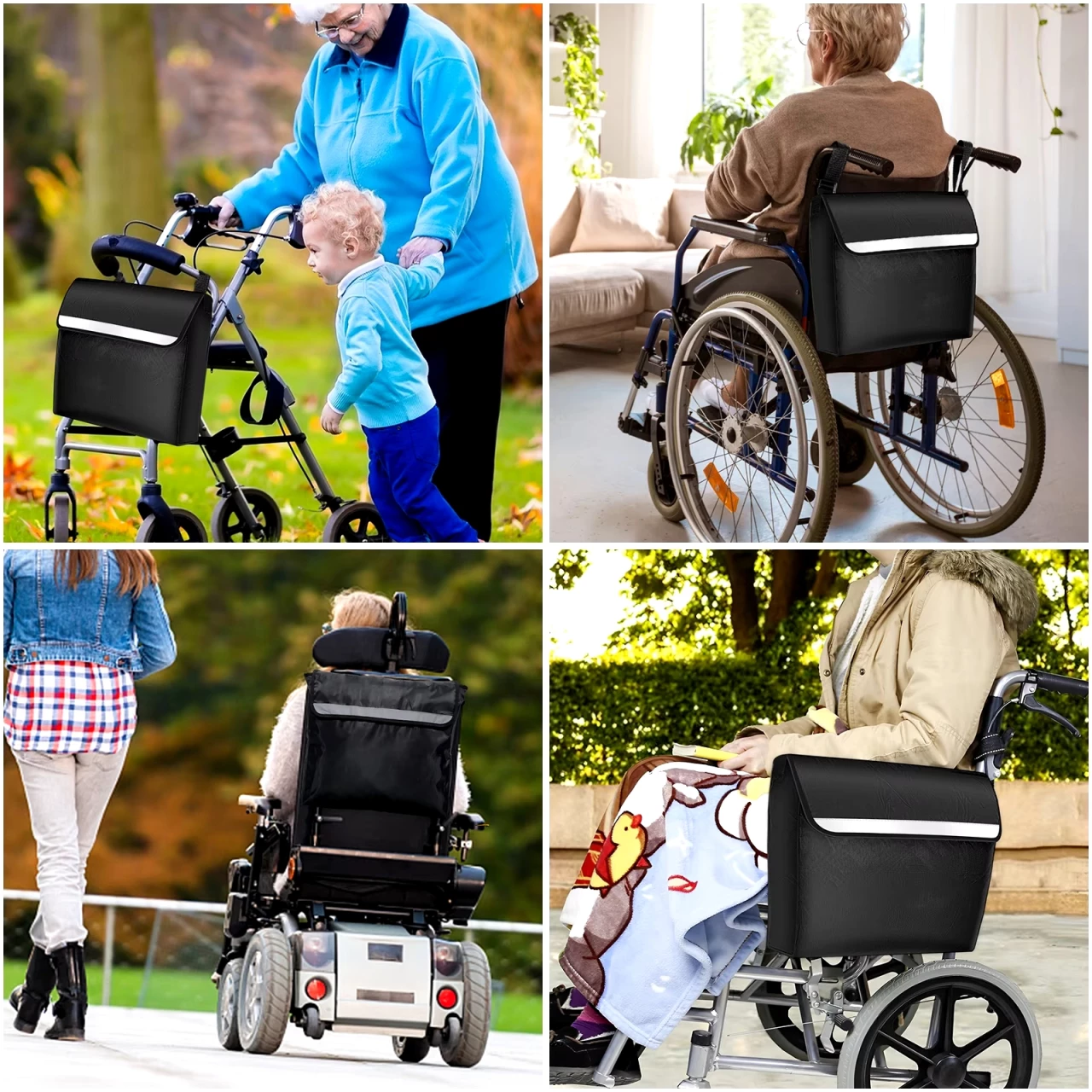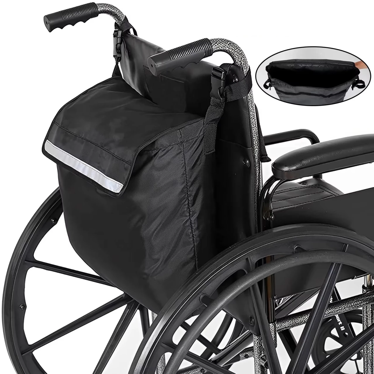 Velmi praktická taška na invalidní vozík je vyrobena z kvalitní tkaniny. Je voděodolná, omyvatelná, pevná a odolná vůči opotřebení, díky čemuž může být používána dlouhodobě. Má na sobě umístěn reflexní pruh. Ten zajišťuje větší bezpečí při jízdě v noci. Např. pro řidiče automobilu je odraz světla z reflexního pruhu viditelný až na 100 metrů. Popruhy této brašny jsou nastavitelné. Její instalace i pozdější sundání je snadné. Taška díky popruhům drží na vozíku pevně a bezpečně.