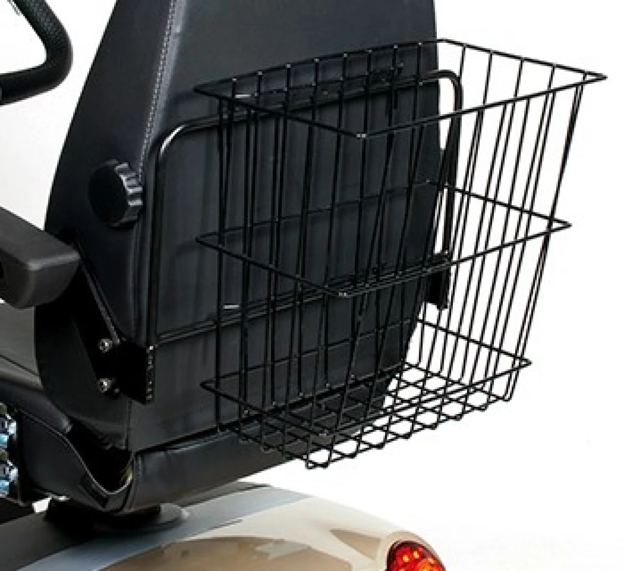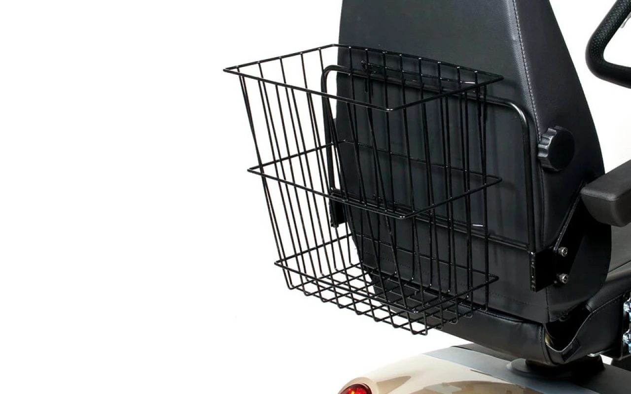 Zadní košík s konstrukcí je určený zejména pro elektrické skútry. Naši technici, při zakoupení skútru včetně košíku, přimontují konstrukci k sedadlu a košík na ni nasadí. Vše vám pak přivezeme hotové. Díky konstrukci má drátěný košík dostatečnou nosnost.